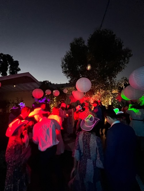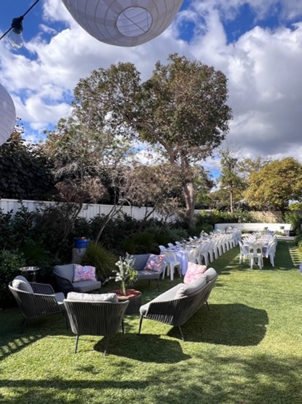A set of 6x portable, battery-operated wash lights that add depth and mood to your event space & lift the party atmosphere! (eg highlighting trees, feature pieces etc)